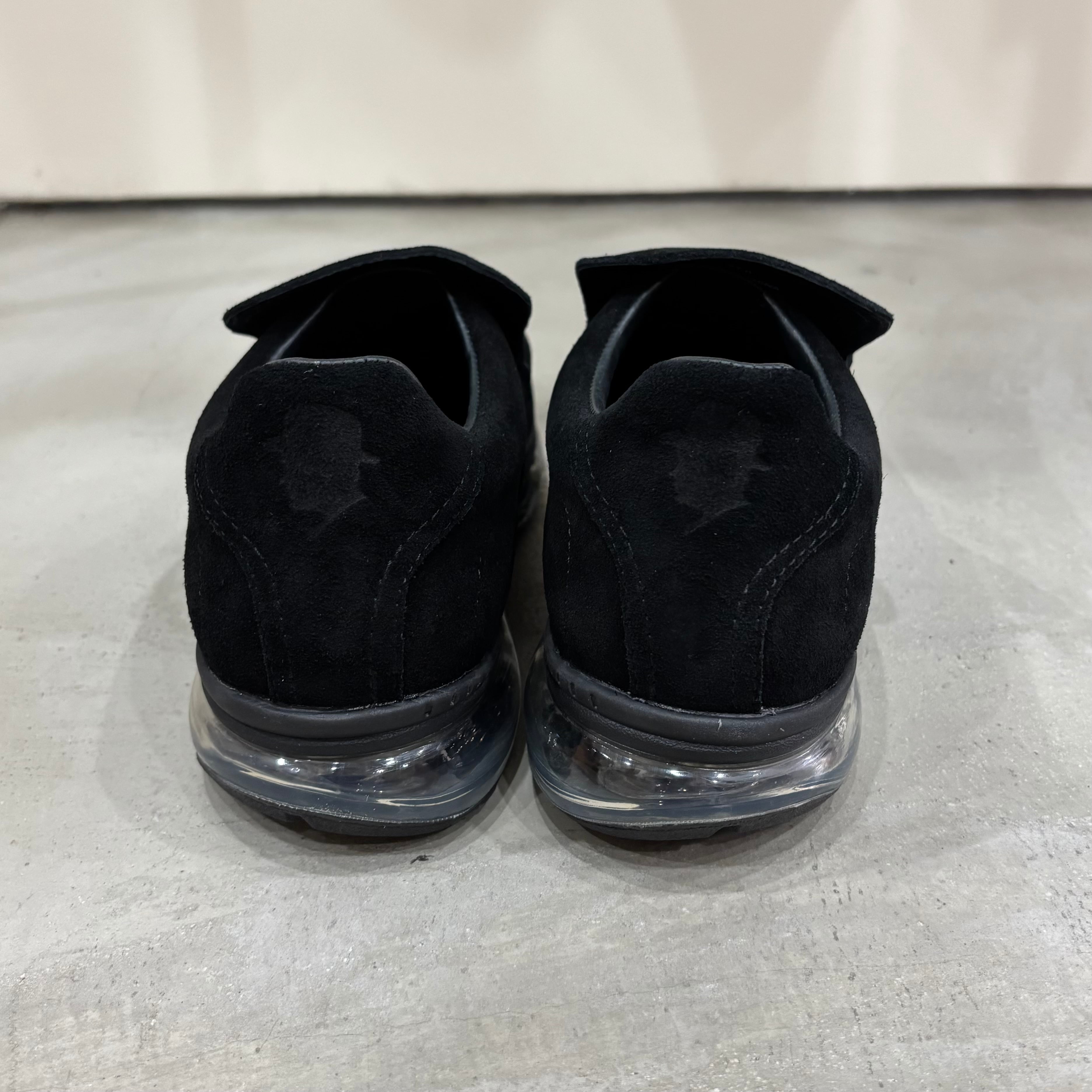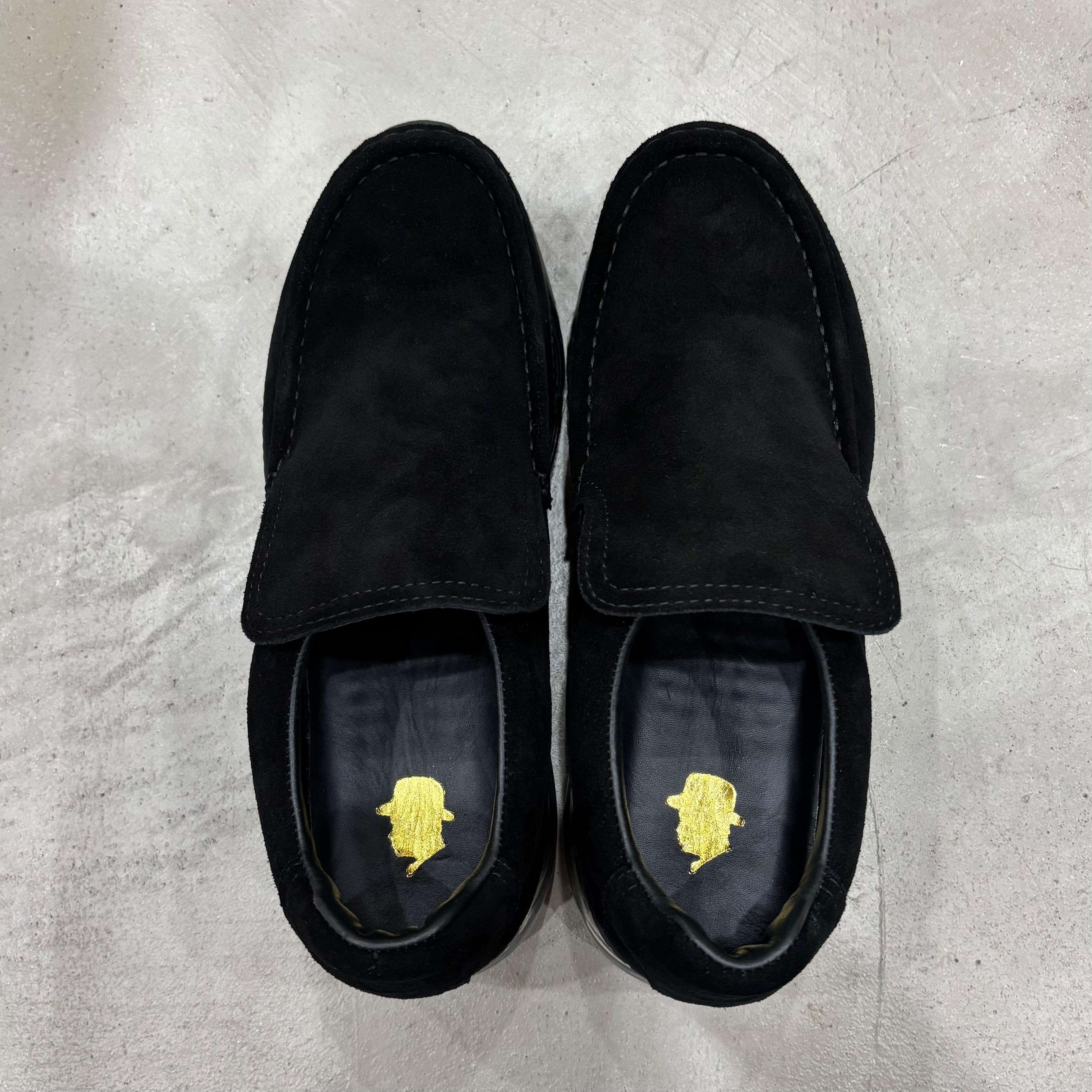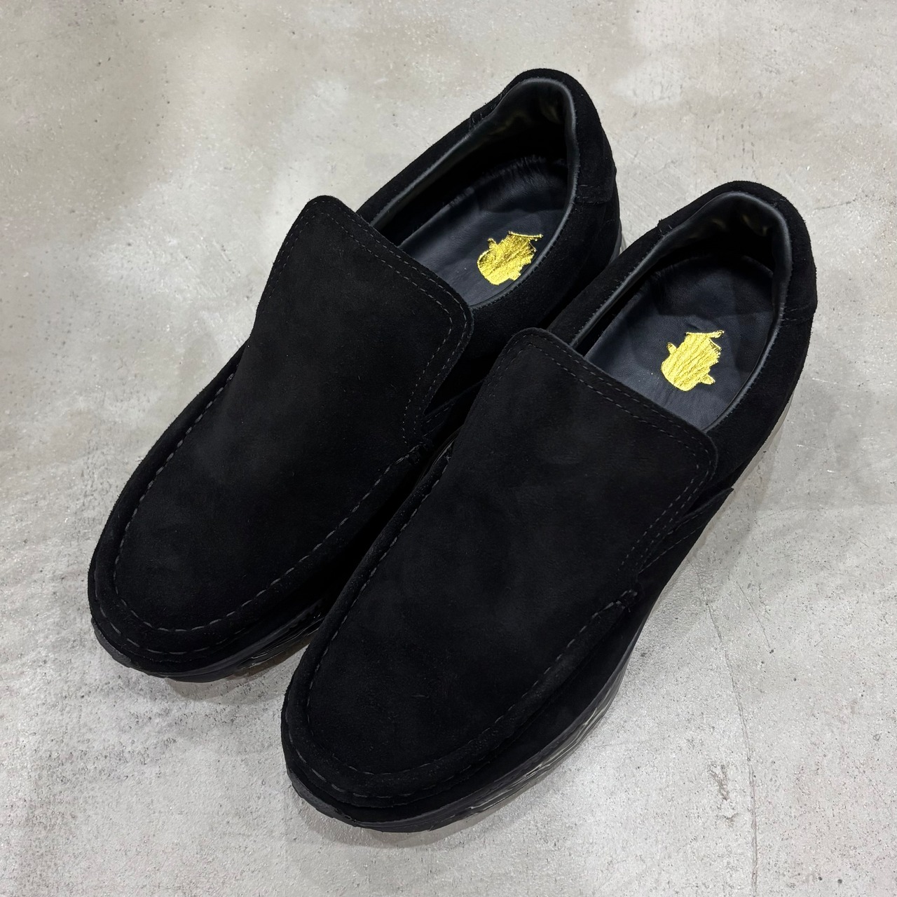 毛足の短い裏面にレジン加工を施した上質なスエードを使用した、スリップオンタイプのスニーカー、