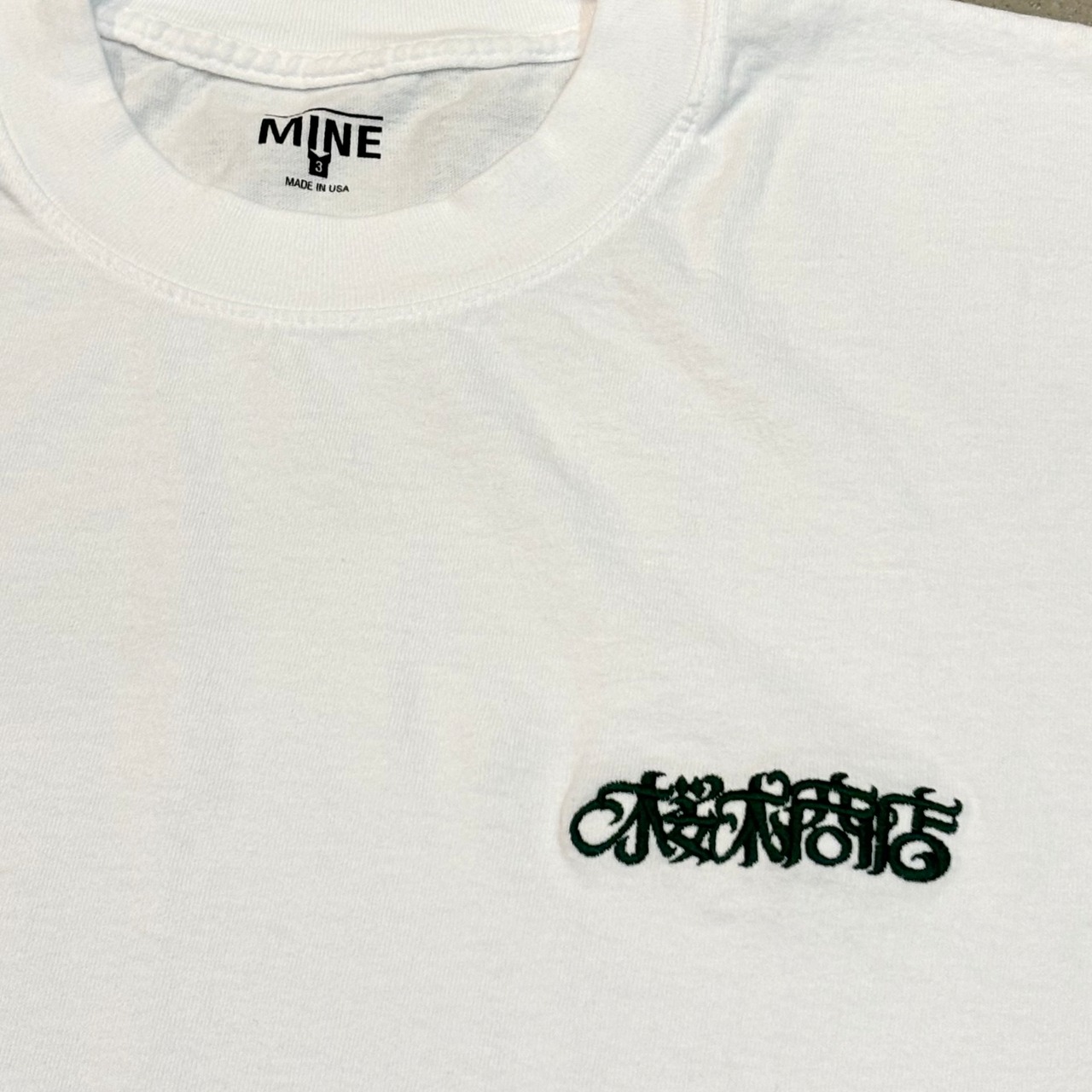 桜木商店×MINE USAが贈る刺繍Tシャツは、シンプルなデザインに刺繍を施し、華やかさをプラスしています。