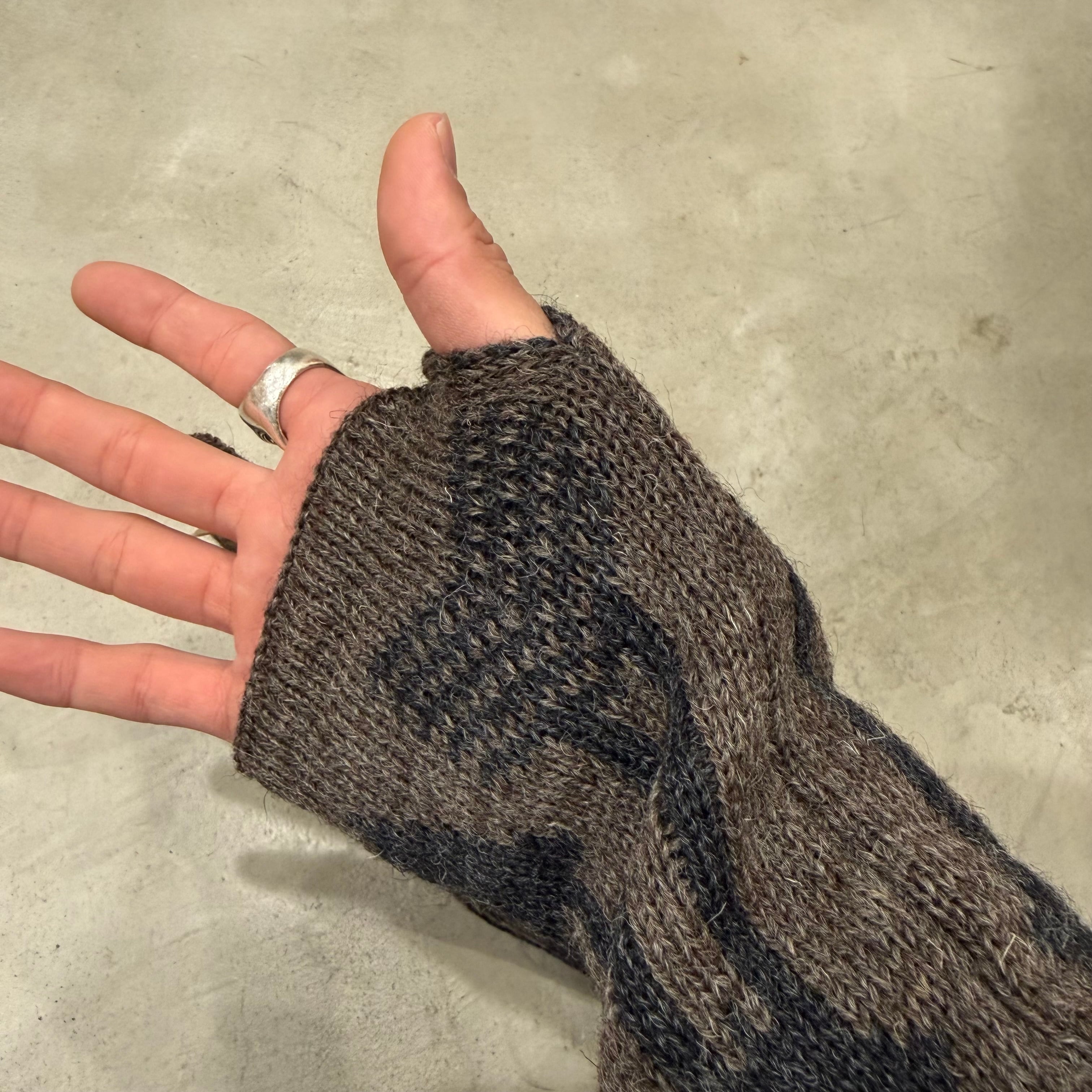 WOOL100%素材で作られておりとても暖かいです。また、thumholeがついており付けたまま作業等ができます。