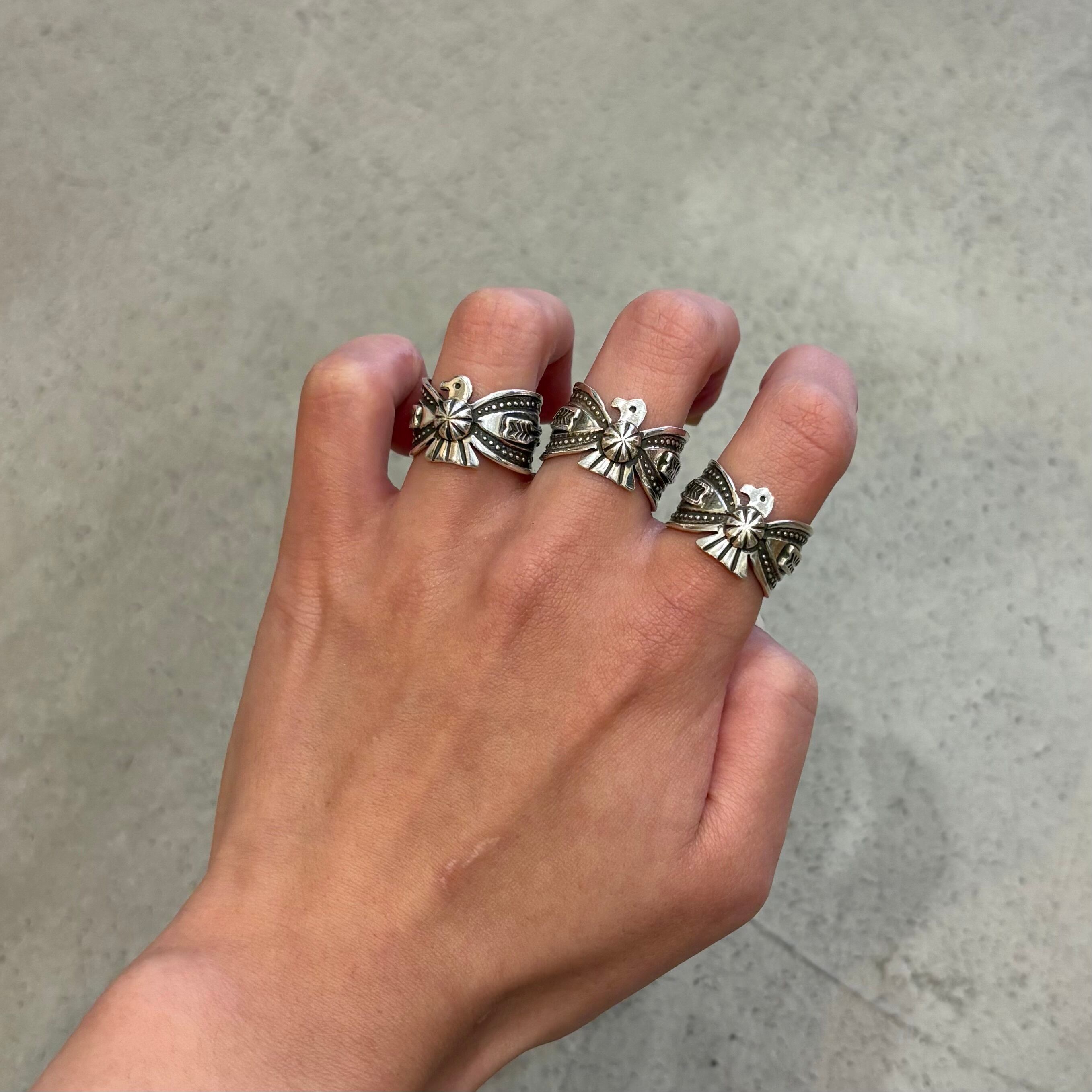 ダレル・キャドマンによるナバホシルバージュエリー「サンダーバード」リング。