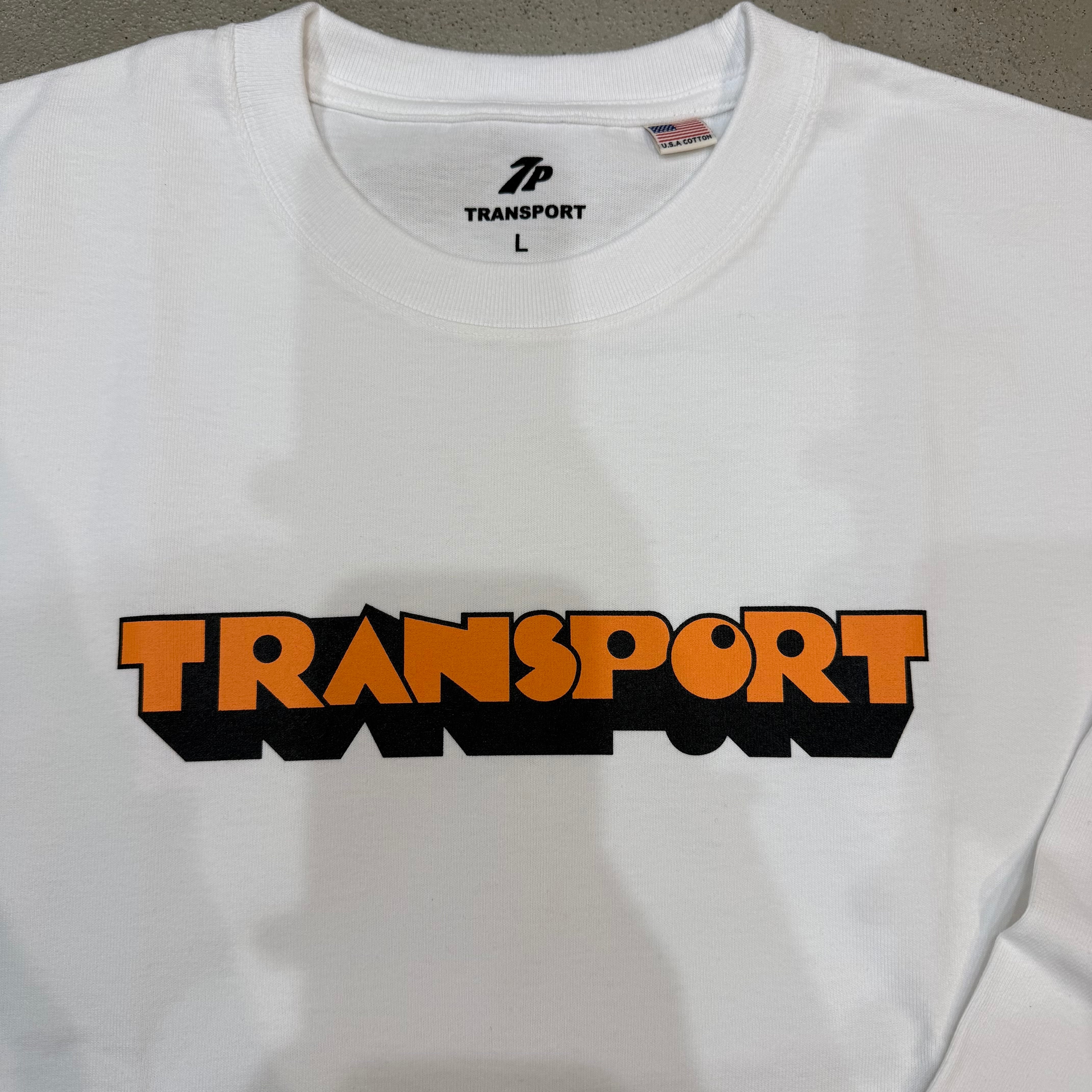 バック部分にはTRANSPORTを省略した文字である「tspt」の文字がプリントされている一枚となっております。