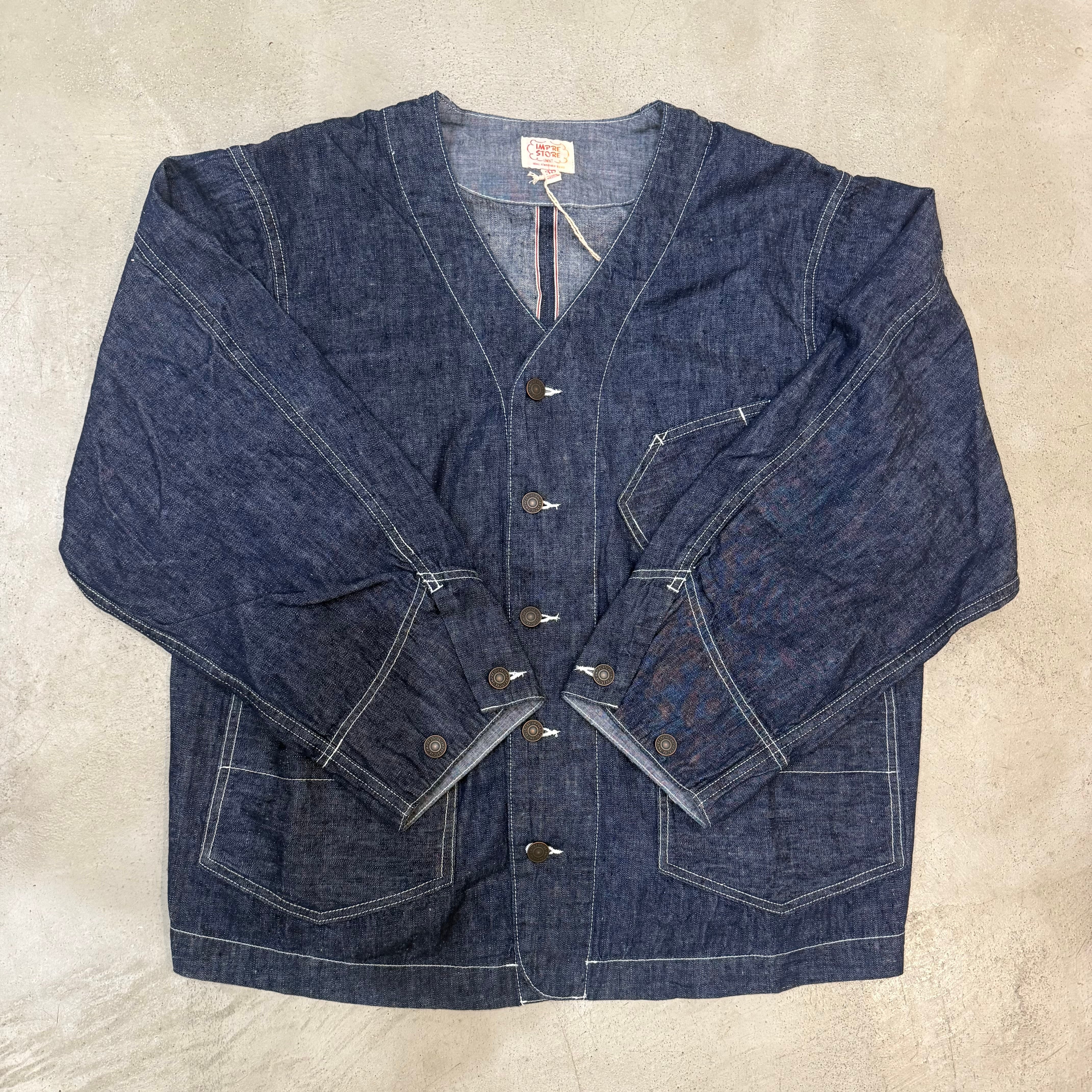 着込んでいくうちに60~70年代のヴィンテージシャツの表情が出るように旧織機で6.5オンスのデニムを編み立てられたエンジニアジャケット。