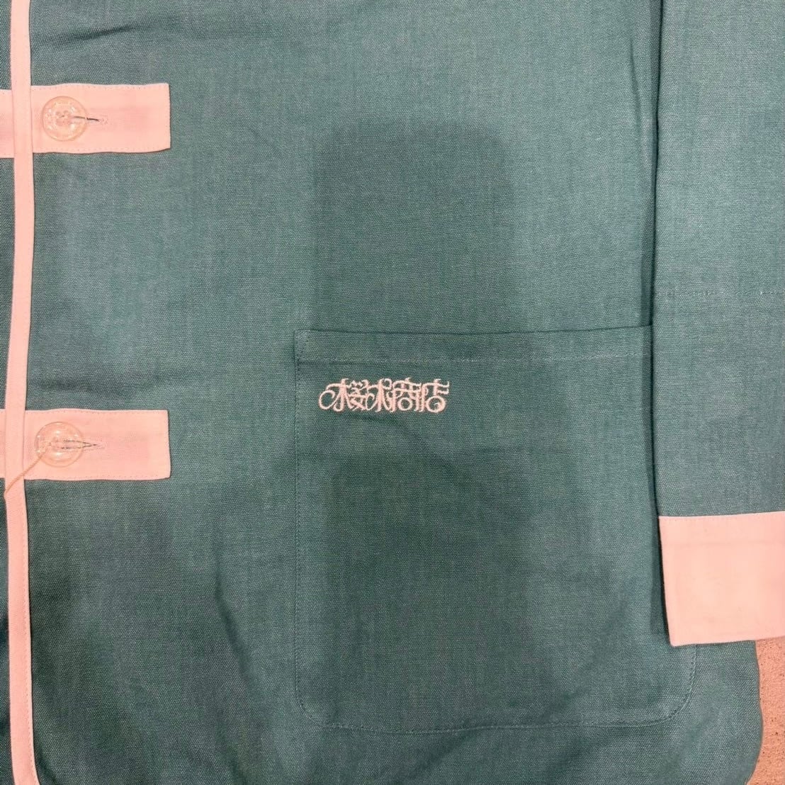 今回はNOWHAW定番のテキスタイル〝ベビーデニム“柔らかく、肌触りのよい6オンスのデニム生地に桜木商店がセレクトしたカラーを使い、NOWHAWの代表的な形Kung-fuを使用したセットアップパジャマになります。また、ジャケットの右ポケット部分、パンツの右ポケット部分には「桜木商店」が刺繍されております。