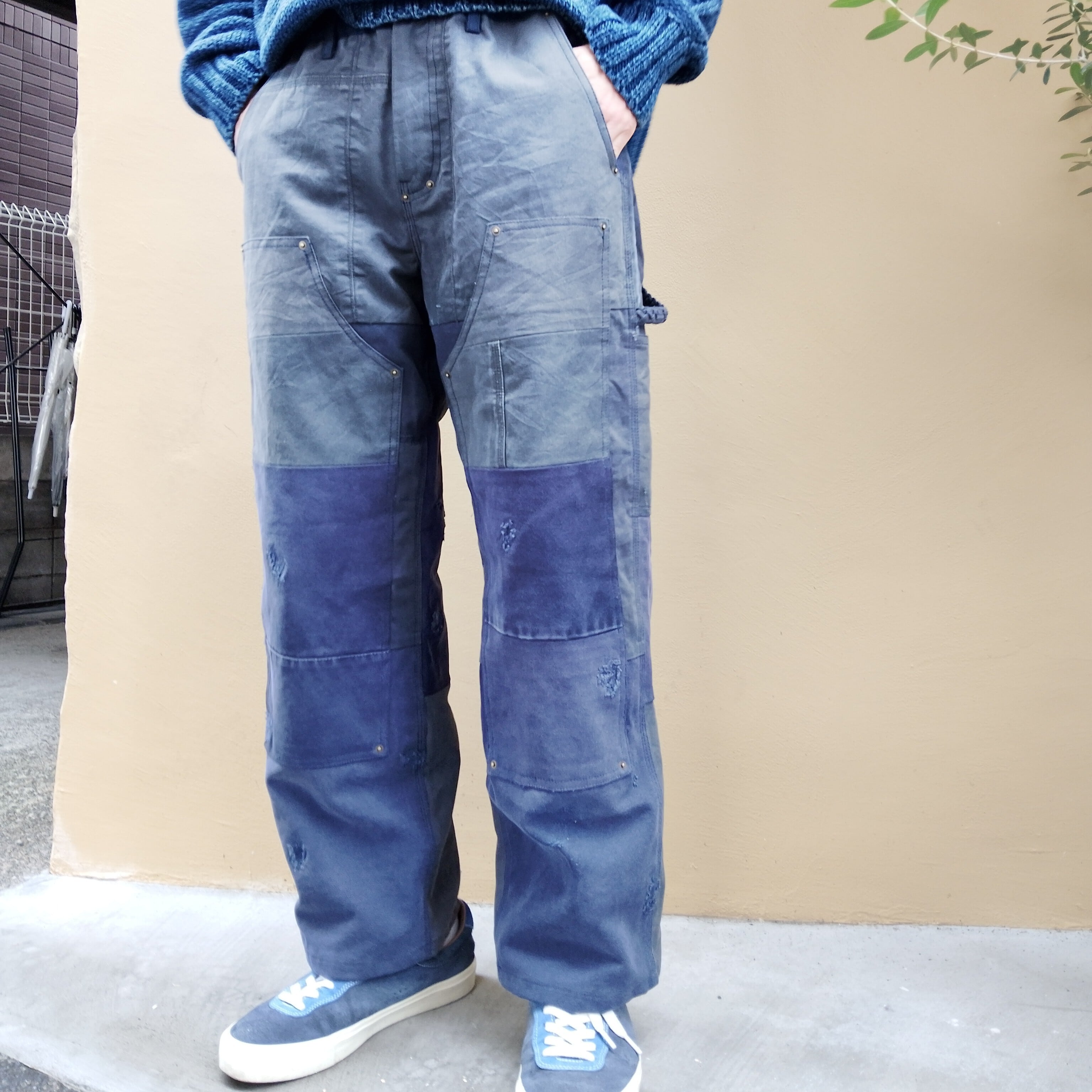 ダック生地のUSEDアイテムを再構築したダブルニーパンツ。何年も使い込んだようなヴィンテージの雰囲気がたまらない一本です。