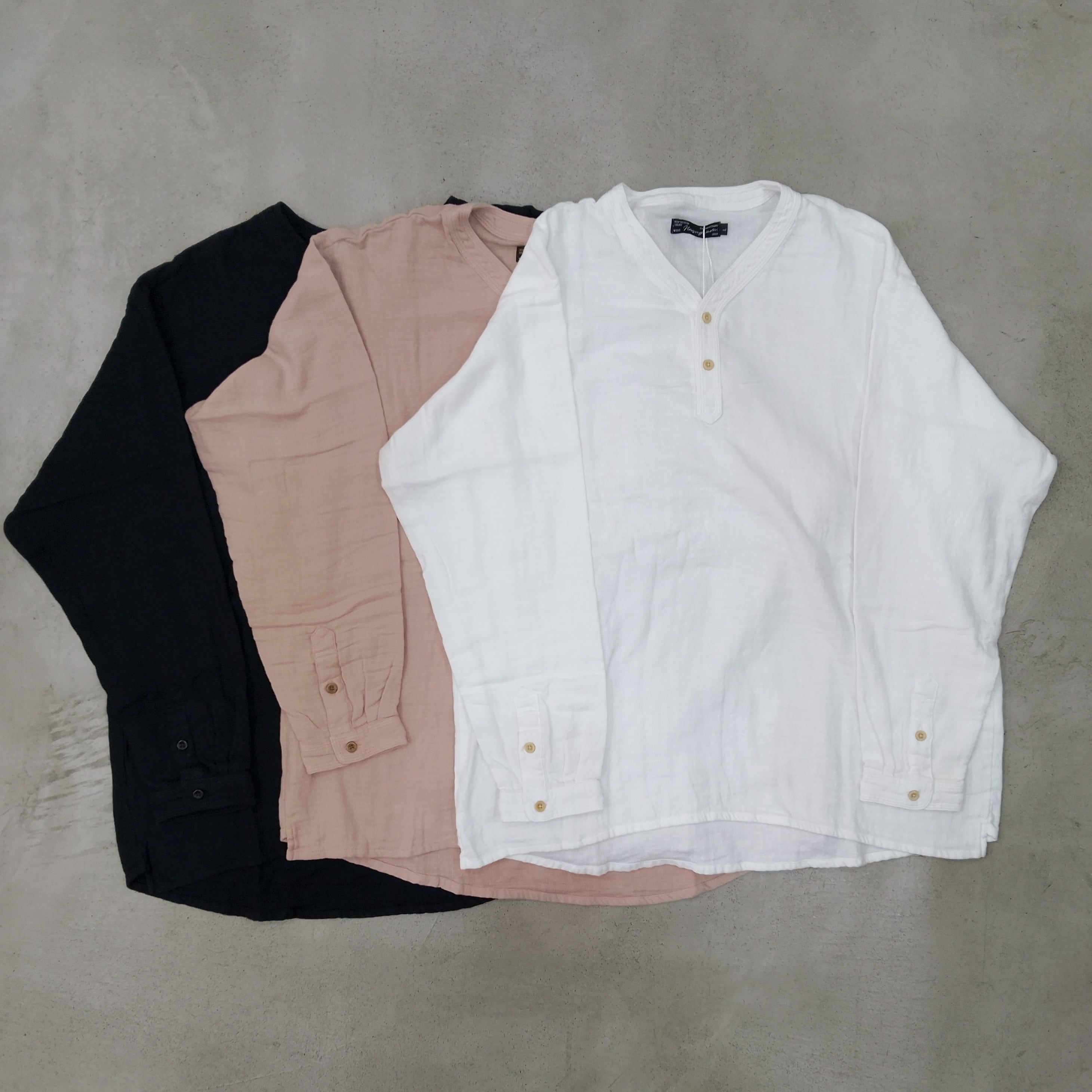 Nasngwam定番商品のVARGRANT SHIRTSが入荷。ガーゼ生地は肌に優しくなじみ、前立てに走る3本針のステッチワークは洗い込むほどに表情変化が楽しめます。